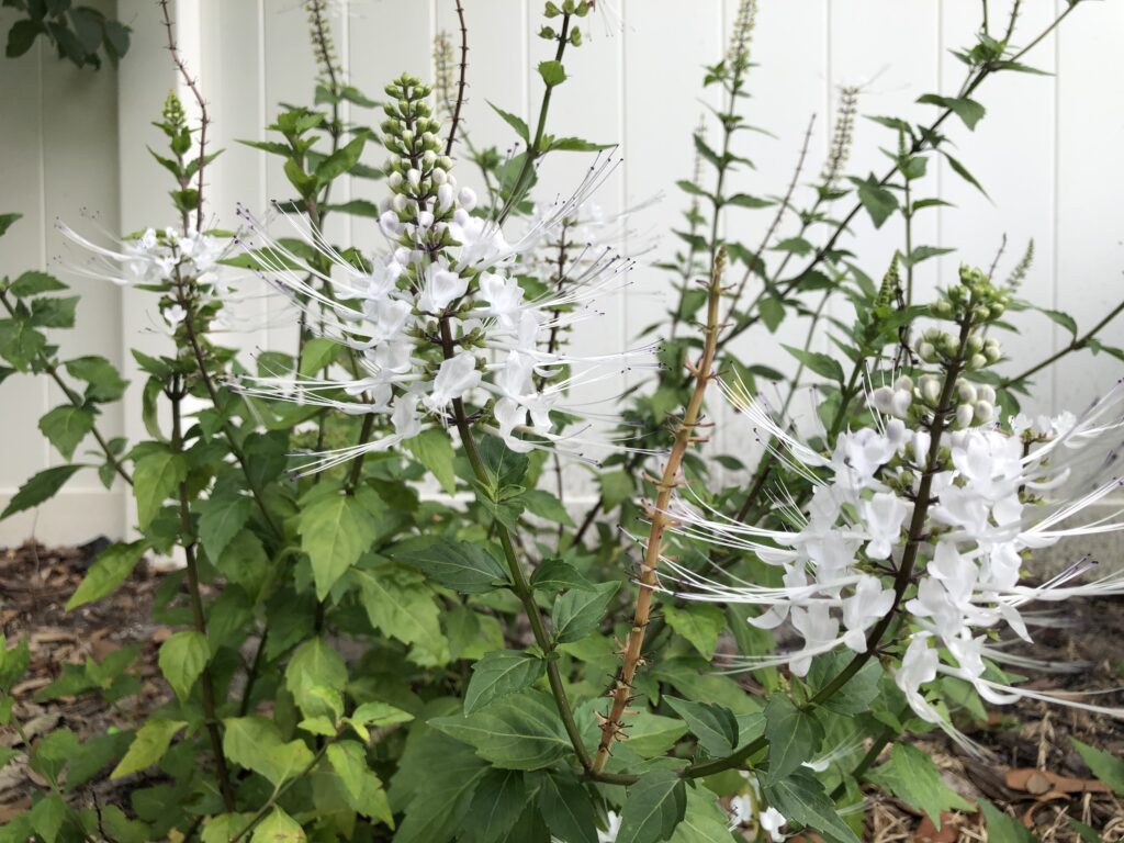 In the moon garden, we will try and go native and Florida-Friendly, but I will probably make more exceptions for wow factor. And this Cat’s Whisker’s is one of the non natives I am trying out. It is originally from eastern Asia. It comes in white and lavender blooms. It is a tender plant, so I might get lucky and it will live many years, or it might die off.